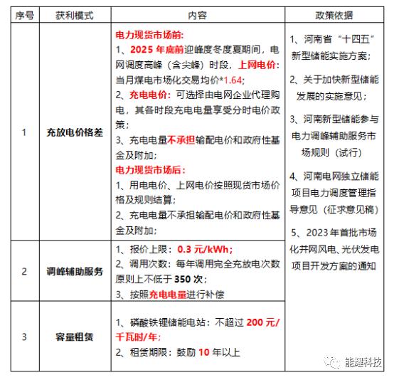 為推動河南儲能項目的開展,2023年,河南省密集出臺多項政策推動儲能發(fā)展,涉及電力調(diào)峰輔助服務(wù)、新能源配儲、獨立儲能容量租賃及調(diào)用次數(shù)等多方面。