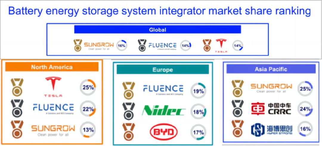 來(lái)源:Wood Mackenzie; 排 名基于2022年儲(chǔ)能系統(tǒng)集成商的shipment numbers; 涵蓋大儲(chǔ)、戶儲(chǔ)和工商業(yè)場(chǎng)景