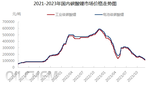 上游環(huán)節(jié),截至12月,鋰電上游碳酸鋰價(jià)格已全線跌破10萬元/噸大關(guān)。而在去年,由于動(dòng)力電池及儲(chǔ)能行業(yè)需求爆發(fā),上游原材料一度供不應(yīng)求,碳酸鋰最高曾攀升至60萬元/噸。