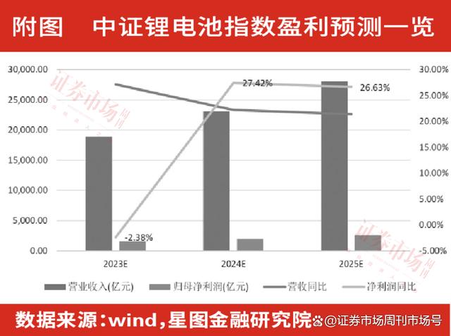 另一方面,從盈利能力來看,當(dāng)前碳酸鋰價格已經(jīng)運行至周期底部,在價格的壓力下,部分外采鋰云母的廠商已經(jīng)處于虧損狀態(tài),未來市場供給側(cè)將逐漸出清,碳酸鋰價格仍有下行壓力,但下行空間已經(jīng)非常有限,隨著供給的逐漸出清和需求的增長,產(chǎn)業(yè)鏈中上游企業(yè)的盈利也將逐漸得到修復(fù)。以市場一致預(yù)期來看,在2023年低基數(shù)下,市場預(yù)期2024-2025年間,鋰電池指數(shù)將實現(xiàn)25%以上的凈利潤增速。