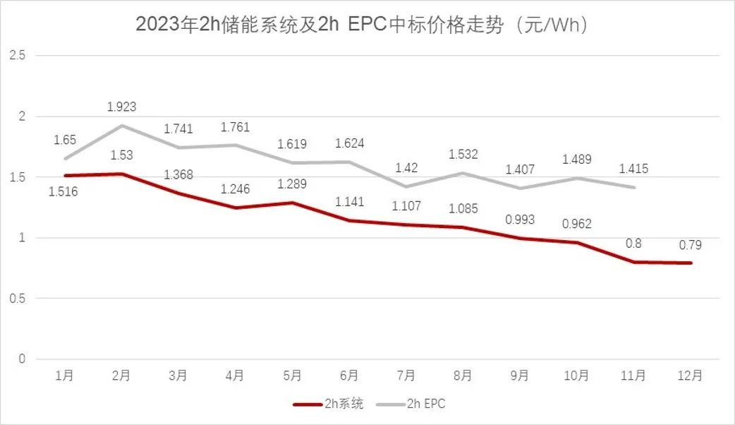 短短一年時間,儲能系統(tǒng)價格已經(jīng)幾近腰斬。來自中關(guān)村儲能產(chǎn)業(yè)技術(shù)聯(lián)盟(CNESA)的統(tǒng)計(jì),到2023年年末,2小時儲能系統(tǒng)中標(biāo)均價已經(jīng)跌至0.79元/Wh,較年初下降48%。而這還僅僅是平均價,一些企業(yè)的報(bào)價還在平均價格之下。