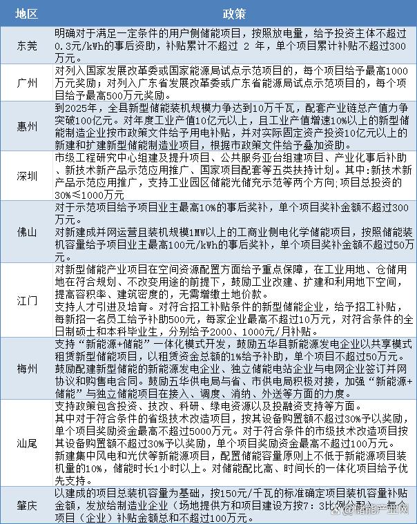 其實(shí),不止是東莞,廣州、惠州、深圳、佛山、江門、梅州、汕尾、肇慶在推動(dòng)儲(chǔ)能發(fā)展上都下足了功夫。