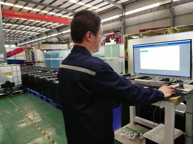 偉力得生產(chǎn)車間內(nèi)工人正在使用自主研發(fā)的智能制造管理系統(tǒng)