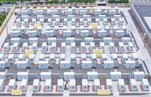 5月30日,榮成市新建成的220千伏成山京能儲能電站,當?shù)仉娏Σ块T工作人員巡檢各儲能單元的運行狀態(tài)。