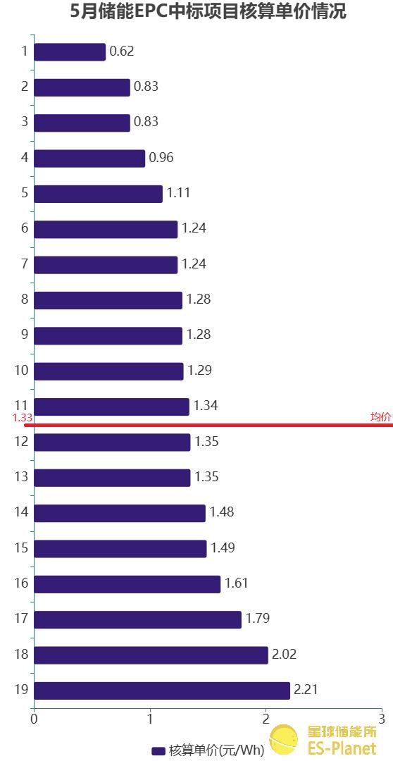 ※ 5月儲能EPC中標單價情況 來源:星球儲能所