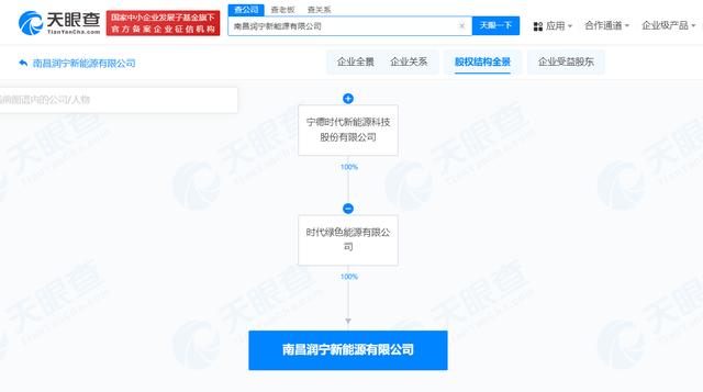 近日,南昌潤(rùn)寧新能源有限公司成立,法定代表人為范一貞,注冊(cè)資本800萬(wàn)人民幣,經(jīng)營(yíng)范圍含工程和技術(shù)研究和試驗(yàn)發(fā)展、新興能源技術(shù)研發(fā)、在線能源計(jì)量技術(shù)研發(fā)、合同能源管理、電池銷(xiāo)售等。股權(quán)全景穿透圖顯示,該公司由時(shí)代綠色能源有限公司全資持股,后者為寧德時(shí)代(300750)全資子公司。