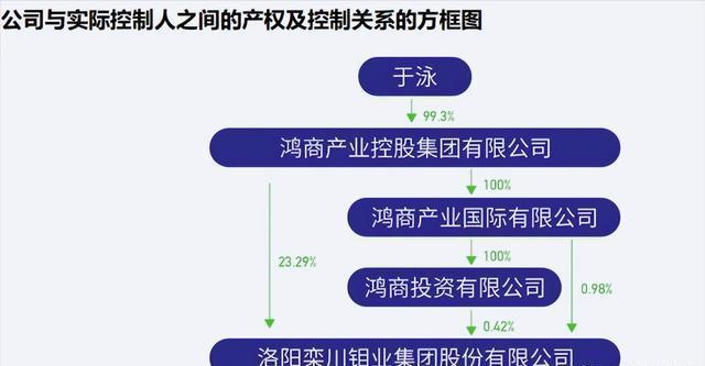 但真正讓人震驚的是,盡管洛陽鉬業(yè)在公眾眼中如此耀眼,其實際控制人卻是一位名不見經(jīng)傳的自然人——于泳。他通過鴻商產(chǎn)業(yè)控股集團直接加間接持有公司約24.69%的股份,比寧德時代控制的股份僅多一點點。這位隱形的富豪,因洛陽鉬業(yè)的市值飆升,身家已高達448億元,堪稱國內(nèi)頂級富豪之一。