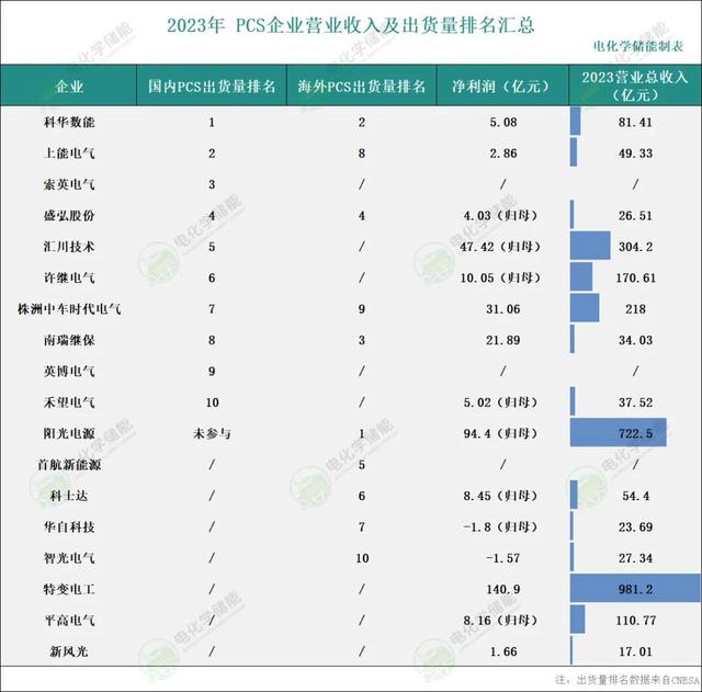 2023年度,海外市場(chǎng)中,儲(chǔ)能PCS出貨量排名前十位的中國(guó)企業(yè),依次為:陽(yáng)光電源、科華數(shù)能、南瑞繼保、盛弘股份、首航新能源、科士達(dá)、華自科技、上能電氣、株洲中車時(shí)代電氣和智光儲(chǔ)能。