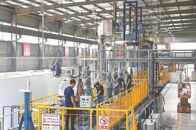 該產(chǎn)線(xiàn)于近日投產(chǎn),是我省首個(gè)千噸級(jí)鈉離子電池正極材料生產(chǎn)線(xiàn)。記者 范柏文 攝(范柏文)