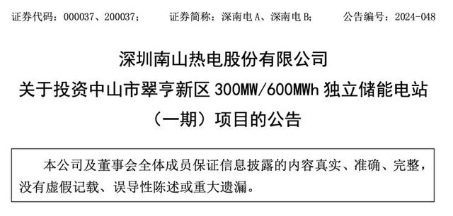 目的及影響方面,深南電A表示,投資中山市翠亨新區(qū)300MW/600MWh獨(dú)立儲(chǔ)能電站(一期)項(xiàng)目符合公司在新形勢(shì)下戰(zhàn)略發(fā)展的需求,有利于推動(dòng)公司在大型儲(chǔ)能領(lǐng)域的探索與實(shí)踐,助力公司向綜合能源服務(wù)轉(zhuǎn)型;有利于公司充分利用現(xiàn)有資源,打造新型商業(yè)模式,推動(dòng)公司全面轉(zhuǎn)型發(fā)展;有利于中山市深入貫徹落實(shí)“雙碳”政策,打造獨(dú)立儲(chǔ)能項(xiàng)目示范,協(xié)同儲(chǔ)能相關(guān)產(chǎn)業(yè)鏈;有利于盤活中山公司線路資產(chǎn),促進(jìn)國有資產(chǎn)的提質(zhì)增效。在確保公司日常經(jīng)營和資金安全的前提下,使用中山公司線路資產(chǎn)投資中山市翠亨新區(qū)300MW/600MWh獨(dú)立儲(chǔ)能電站(一期)項(xiàng)目不影響公司日常資金周轉(zhuǎn)需要,不影響公司生產(chǎn)經(jīng)營的正常開展。中山市翠亨新區(qū)300MW/600MWh獨(dú)立儲(chǔ)能電站(一期)項(xiàng)目產(chǎn)業(yè)方向符合公司未來的戰(zhàn)略布局,將會(huì)對(duì)公司未來的財(cái)務(wù)狀況及長遠(yuǎn)發(fā)展產(chǎn)生積極影響。