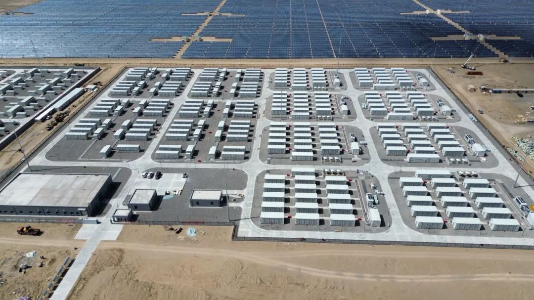 該電站位于青海省海西蒙古族藏族自治州格爾木市,由中國電建所屬華東院總承包。電站總裝機(jī)容量224.5兆瓦/889兆瓦時(shí),由傳統(tǒng)集中式儲能系統(tǒng)和構(gòu)網(wǎng)型高壓直掛式儲能系統(tǒng)組成,其中包含的430.4MWh高壓直掛式儲能是國內(nèi)規(guī)模最大的高壓直掛構(gòu)網(wǎng)型儲能項(xiàng)目。