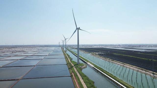 該項目作為魯北基地首家投產(chǎn)運(yùn)營的風(fēng)光儲試點(diǎn),創(chuàng)新性地采用“漁光互補(bǔ)”“鹽光互補(bǔ)”發(fā)展模式,實現(xiàn)了鹽光、漁光與儲能的集中連片、立體高效利用,標(biāo)志著綠色發(fā)展的新實踐。而幾年前,這片區(qū)域還是一片荒蕪的鹽堿地,營里鎮(zhèn)經(jīng)濟(jì)發(fā)展辦副主任王恒回憶,這里曾以鹽田和養(yǎng)殖灘涂為主,產(chǎn)業(yè)單一、發(fā)展模式傳統(tǒng),海洋資源利用率低,限制了區(qū)域的綜合發(fā)展。