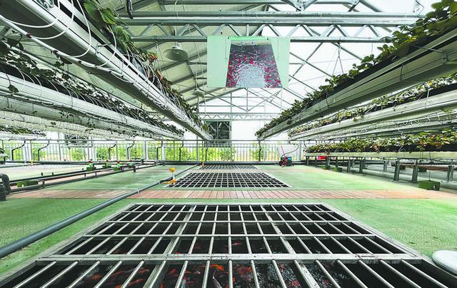 比如長豐縣陶樓鎮(zhèn)的“光伏+智慧農(nóng)業(yè)”科技示范基地內(nèi),有不少科技大棚,采用了棚頂光伏發(fā)電、中間種植草莓生菜、下面水產(chǎn)養(yǎng)殖的光伏漁菜養(yǎng)殖模式。光伏板設(shè)于大棚頂部,源源不斷提供電能,底部安裝了集中箱進(jìn)行養(yǎng)魚,上方則種植著一排排盆栽草莓和辣椒,一幅現(xiàn)代智慧農(nóng)業(yè)風(fēng)景圖生機(jī)勃勃。