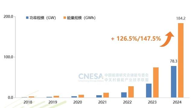 據(jù)CNESA DataLink全球儲(chǔ)能數(shù)據(jù)庫統(tǒng)計(jì),截至2024年底,我國(guó)電力儲(chǔ)能累計(jì)裝機(jī)量實(shí)現(xiàn)重大突破,首次突破百吉瓦大關(guān),達(dá)到137.9GW。其中,新型儲(chǔ)能裝機(jī)規(guī)模首次超過抽水蓄能,達(dá)到78.3GW/184.2GWh,功率和能量規(guī)模同比增長(zhǎng)分別達(dá)到126.5%和147.5%。這一數(shù)據(jù)標(biāo)志著中國(guó)新型儲(chǔ)能產(chǎn)業(yè)發(fā)展進(jìn)入新的歷史階段。