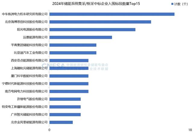圖3:2024年儲(chǔ)能系統(tǒng)集采/框采中標(biāo)企業(yè)入圍標(biāo)段數(shù)量TOP15