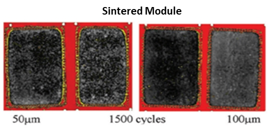 傳統(tǒng)焊料在高溫波動及高功率循環(huán)條件下易產生疲勞效應,導致連接層失效,從而影響模塊的使用壽命。燒結銀技術,通過提高連接層的強度和穩(wěn)定性,有效延長了功率模塊的使用壽命。