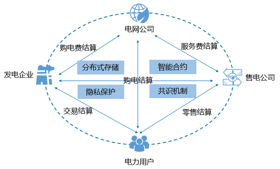 市場(chǎng)化的電費(fèi)結(jié)算是能源交易的核心業(yè)務(wù),我國(guó)的電費(fèi)結(jié)算技術(shù)開始于1960年,隨后被廣泛應(yīng)用于各行各業(yè)。目前,我國(guó)普遍采取“預(yù)購(gòu)電”方式結(jié)算電費(fèi),但這種模式對(duì)分布式新能源接入等多種新場(chǎng)景,存在能量流、信息流不統(tǒng)一,交易流程長(zhǎng)、響應(yīng)不及時(shí)、合同履約難掌控、信用體系難建立等問(wèn)題。