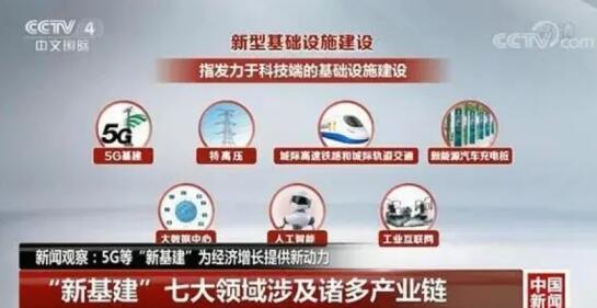 據(jù)央視新聞指出,“新基建”的范圍主要指發(fā)力于科技端的基礎(chǔ)設(shè)施建設(shè),包含5G基建、特高壓、城際高速鐵路和城際軌道交通、新能源汽車充電樁、大數(shù)據(jù)中心、人工智能、工業(yè)互聯(lián)網(wǎng)七大領(lǐng)域,涉及到通信、電力、交通、數(shù)字等多個社會民生重點行業(yè)。