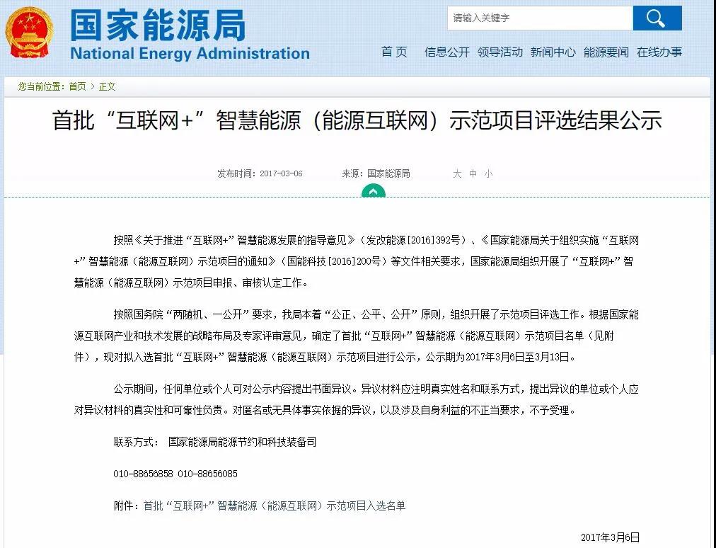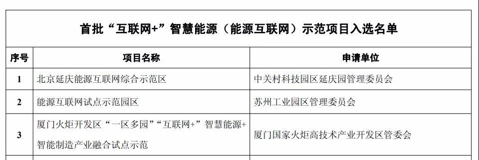“廈門火炬開發(fā)區(qū)‘一區(qū)多園’‘互聯(lián)網(wǎng)+’智慧能源+智能制造產(chǎn)業(yè)融合試點示范”項目屬于國家能源局首批“互聯(lián)網(wǎng)+”智慧能源(能源互聯(lián)網(wǎng))示范項目之一,項目牽頭單位為廈門國家火炬高技術(shù)產(chǎn)業(yè)開發(fā)區(qū)管理委員會,項目于2017年3月6日在國家能源局網(wǎng)站公示。