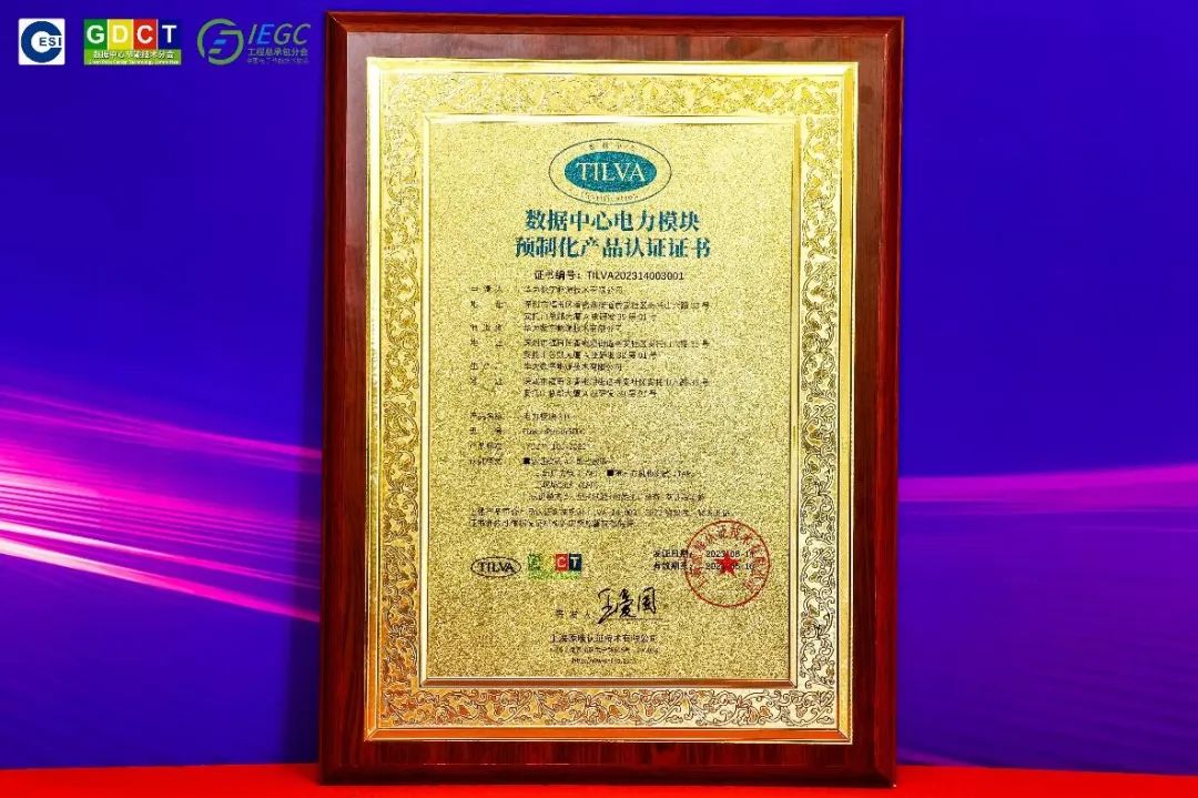 業(yè)界首個(gè)“數(shù)據(jù)中心電力模塊預(yù)制化產(chǎn)品認(rèn)證”證書