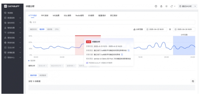 DataBuff 新核心業(yè)務(wù)觀測與故障定位解決方案主要包括三個(gè)方面的功能:基于業(yè)務(wù)觀測的用戶旅程分析、基于因果AI的故障定位能力、基于生成式AI的運(yùn)維自動(dòng)化能力,以下展開詳細(xì)說明: