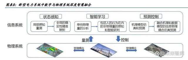 智慧融合是構建新型電力系統(tǒng)的基礎。新型電力系統(tǒng)以數(shù)據(jù)為核心驅(qū)動,呈現(xiàn)數(shù)字與物理 系統(tǒng)深度融合特點,系統(tǒng)控制運行由“量測-控制”模式向多物理系統(tǒng)的狀態(tài)感知、智能 學習和預測控制等方式轉(zhuǎn)變。1)狀態(tài)感知:電網(wǎng)內(nèi)外參與耦合運行的物理系統(tǒng),將從局 部的感知量測,向全局的確定性精準映射轉(zhuǎn)變。2)智能學習:由于參與要素的多樣性,將 從單純物理量的分析,向包括人的行為在內(nèi)的非物理量的感知和智能研判進行轉(zhuǎn)變。3) 預測控制:將從電力物理系統(tǒng)的機理模型仿真和預測,向融合機理和數(shù)據(jù)模型的信息物理 耦合仿真預測轉(zhuǎn)變,提升隨機變量的預測精度,并應用于電網(wǎng)逐級調(diào)控和控制引導。