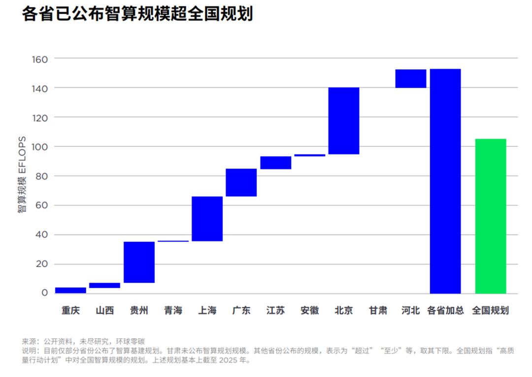 中國智能算力規(guī)模正在爆發(fā)式增長。在國家政策、市場(chǎng)競(jìng)爭(zhēng)的推動(dòng)下,中國各地規(guī)劃的智算規(guī)??偭?,已經(jīng)超過了全國的計(jì)劃目標(biāo);智算規(guī)模實(shí)際部署速度,也要快于計(jì)劃文件的目標(biāo)。