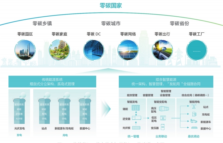 傳統(tǒng)能源系統(tǒng)向綜合智慧能源系統(tǒng)演進(jìn)示意圖