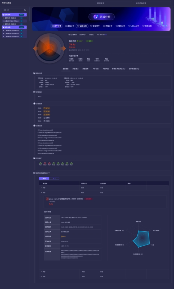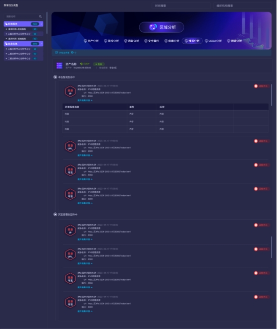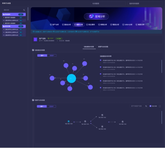 長揚(yáng)態(tài)感網(wǎng)絡(luò)空間安全分析功能以資產(chǎn)為核心,從區(qū)域、聯(lián)通性、病毒、情報(bào)、漏洞、基線、溯源、UEBA行為等多個方面進(jìn)行全方位、立體化分析。