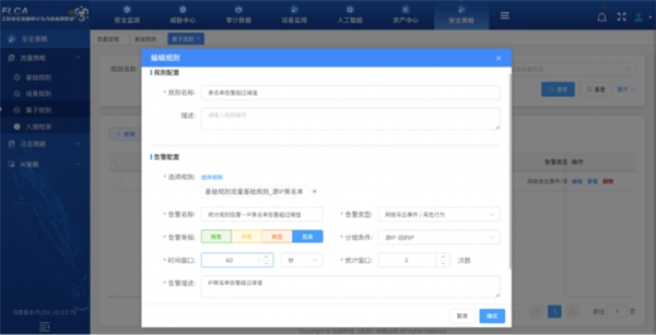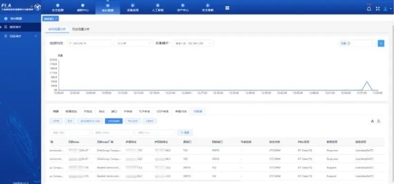 工控內(nèi)網(wǎng)安全監(jiān)視:記錄功能碼、數(shù)據(jù)地址、寄存器地址、對象名、屬性、數(shù)據(jù)類型、類型標(biāo)識、傳輸原因、應(yīng)用程序數(shù)據(jù)單元、數(shù)據(jù)塊等工控協(xié)議的主要參數(shù)和特征,通過機(jī)器學(xué)習(xí)技術(shù)分析并學(xué)習(xí)通信正常模式,及時(shí)發(fā)現(xiàn)異常流量和攻擊行為。