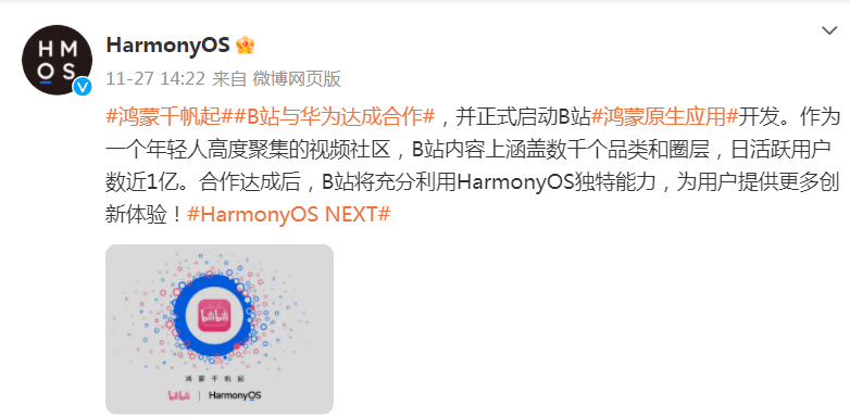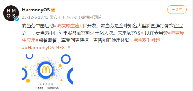 1月10日晚,HarmonyOS微博發(fā)文稱:京東啟動鴻蒙原生應用開發(fā),雙方將攜手為消費者帶來全場景“多快好省”購物體驗,更智能,更貼心。