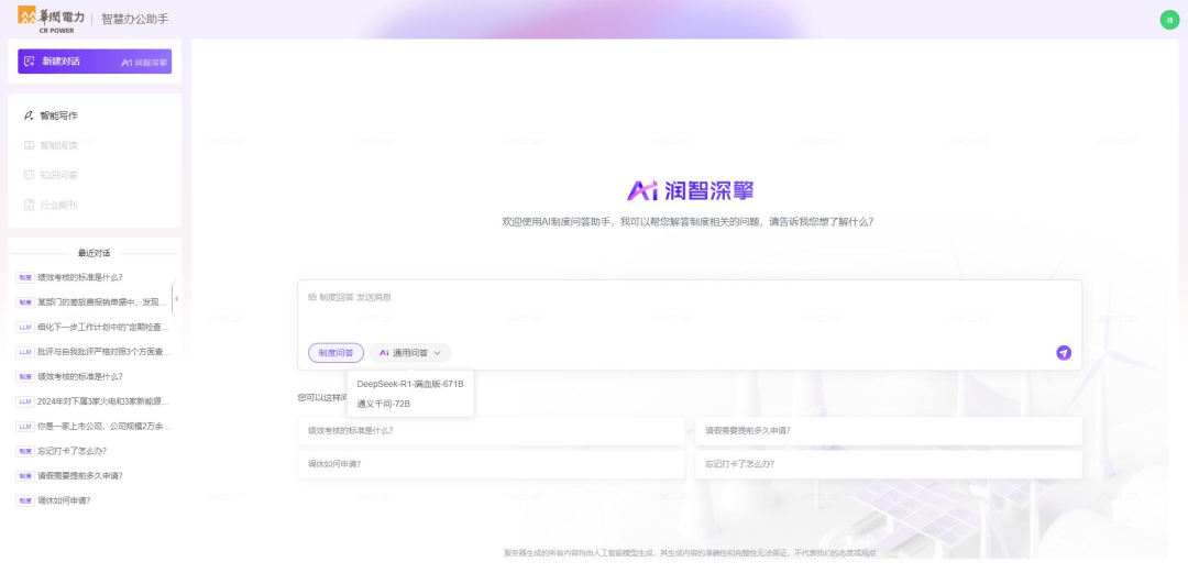 華潤電力基于DeepSeek671B大模型的深度解析能力,對419份制度文件進行結(jié)構(gòu)化處理,構(gòu)建制度知識庫,初步實現(xiàn)制度問答功能驗證。