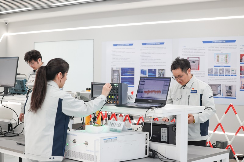 ▲國網(wǎng)北京電科院科研人員在實驗室開展實驗工作