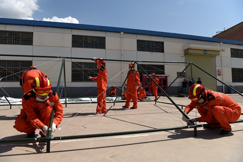 經(jīng)過20多分鐘的應(yīng)急演練,兩座防震帳篷按要求迅速搭建成功,1名受傷人員在緊急醫(yī)療救護(hù)后被迅速送往醫(yī)院。隨后,演習(xí)指揮部詳細(xì)檢查了防震帳篷搭設(shè)情況,聽取了各搶險隊伍巡檢匯報。