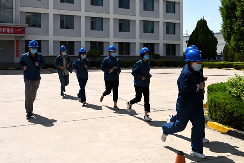 警報拉響后,來自來該廠的6個分場、3個部門的的職工迅速組織成應(yīng)急搶險隊伍,向應(yīng)急指揮中心院內(nèi)集結(jié)。同時,該廠非生產(chǎn)區(qū)域辦公樓的工作人員也沖出辦公場所,向應(yīng)急疏散避難場所內(nèi)緊急集結(jié)。