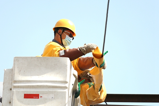 中國電力網(wǎng)訊 5月7日,在濰坊壽光市文正教育學校附近,國網(wǎng)壽光市供電公司帶電作業(yè)人員對10千伏全福元1線東郭支線02號桿,10千伏華府線東七南支線04號桿進行帶電絕緣化改造,進一步提高線路安全運行水平,確保廣大師生能夠用上安全電、放心電。