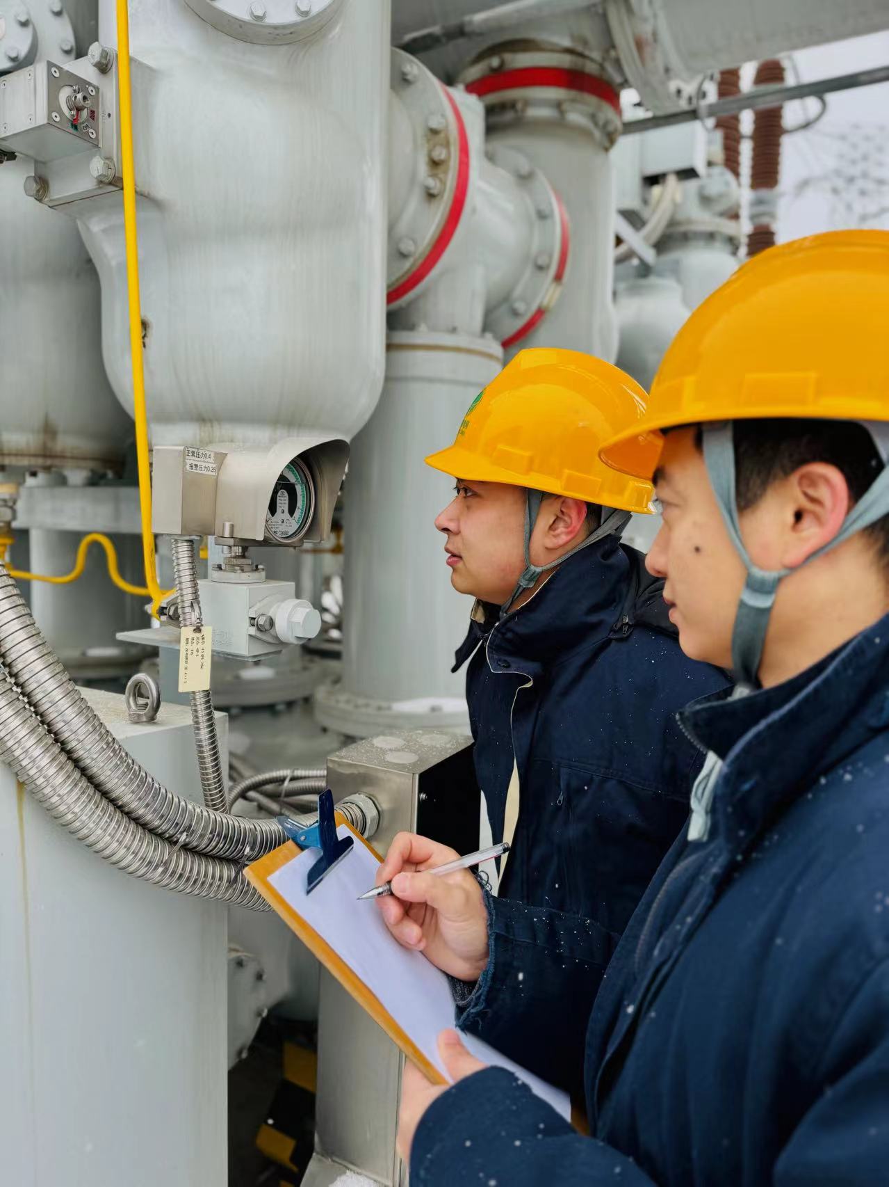 變電運維人員實時監(jiān)測GIS設(shè)備氣室SF6氣體壓力值。(圖片由供電公司提供)