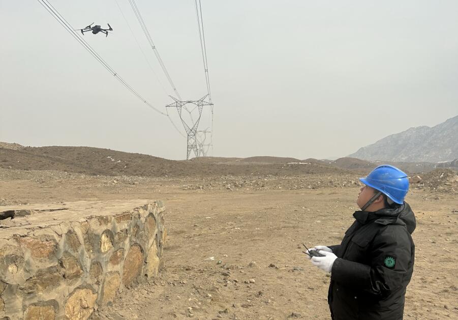 “伴隨著螺旋槳的嗡嗡聲,保電人員操控著無人機(jī)向著高處的導(dǎo)線飛去,細(xì)致排查線路運行情況”。3月3日,輸電管理處鄂爾多斯地區(qū)保電人員利用無人機(jī)對500千伏布烏雙回線、500千伏迪勒雙回線“三跨”塔段開展特巡,及時掌握線路狀態(tài)。為保障兩會期間線路可靠運行,輸電管理處詳細(xì)制定保供電方案和應(yīng)急預(yù)案,全方位強(qiáng)化運維保障工作。從加強(qiáng)線路巡視入手,在烏海、鄂爾多斯、巴盟及阿拉善地區(qū)建立4支動態(tài)巡視小組共計58人、13臺保電車輛,針對24條輸電線路運用“人工+可視化+無人機(jī)”運維手段全線24小時不間斷巡視,保障重要電力通道安全穩(wěn)定。