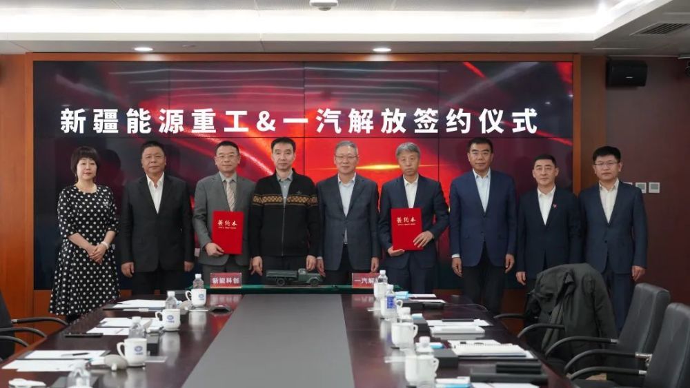1月14日,一汽解放汽車有限公司(簡(jiǎn)稱“一汽解放”)與新疆能源重工科創(chuàng)有限責(zé)任公司(簡(jiǎn)稱“新疆能源重工”)在長(zhǎng)春簽署1000輛采購(gòu)框架協(xié)議,全面深化戰(zhàn)略合作伙伴關(guān)系。新疆能源集團(tuán)銷售 (產(chǎn)業(yè)鏈) 公司黨委書(shū)記、董事長(zhǎng)王凱,新疆能源重工科創(chuàng)有限責(zé)任公司副董事長(zhǎng)瞿猛、總經(jīng)理姜李明,中國(guó)一汽總經(jīng)理助理、一汽解放董事長(zhǎng)、黨委書(shū)記胡漢杰,一汽解放常務(wù)副總經(jīng)理于長(zhǎng)信出席簽約儀式。