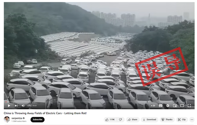 近段時(shí)間,推特、Youtube等社交平臺(tái)上廣泛流傳說法稱,“中國(guó)對(duì)電動(dòng)汽車投資過度”“中國(guó)正在丟棄大量汽車,任其腐爛”、“浪費(fèi)”。有關(guān)說法通常配有圖片或視頻,顯示在雜草叢中停放著上百輛汽車。