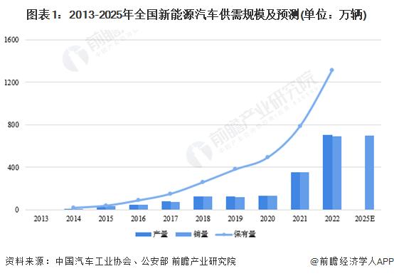 新能源汽車是我國應(yīng)對氣候變化、推動綠色發(fā)展的戰(zhàn)略舉措,在政策和市場需求的推動下,我國新能源汽車產(chǎn)銷量雙雙增長,2022年,全國新能源汽車實現(xiàn)產(chǎn)量705.8萬輛、實現(xiàn)銷量688.7萬輛;同時,據(jù)公安部數(shù)據(jù)顯示,截至2022年末,全國新能源汽車保有量已達(dá)1310萬輛,占汽車總量的4.10%。根據(jù)國務(wù)院印發(fā)的《新能源汽車產(chǎn)業(yè)發(fā)展規(guī)劃(2021-2035年)》,未來幾年我國新能源汽車行業(yè)仍將保持高速發(fā)展態(tài)勢,至2025年,新能源汽車新車銷售量達(dá)到汽車新車銷售總量的20%左右,預(yù)計銷量將突破700萬輛。
