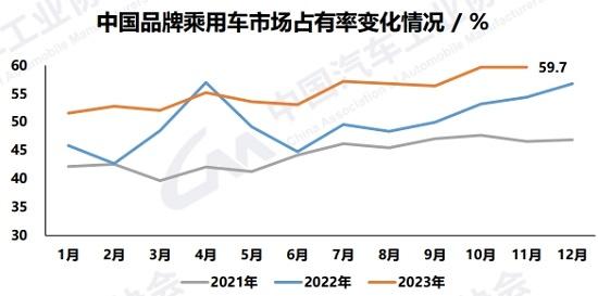 在乘用車市場中,中國品牌占比持續(xù)提升。11月,中國品牌乘用車共銷售155.6萬輛,同比增長37.9%,占乘用車銷售總量的59.7%,比上年同期提升5.4個百分點;1-11月,共銷售1297.8萬輛,同比增長23.8%,市場份額為55.8%。“今年以來,中國品牌乘用車市場占有率一直維持在50%以上,如今已經連續(xù)兩個月占比接近60%。”陳士華說。