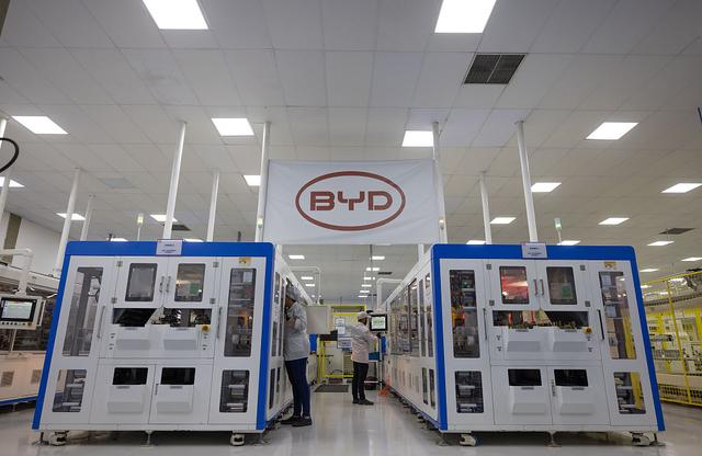 當(dāng)?shù)貢r(shí)間2023年11月14日,巴西圣保羅州,比亞迪太陽(yáng)能電池板和電動(dòng)巴士底盤(pán)生產(chǎn)工廠的工人。比亞迪表示,該公司將在巴西投資30億雷亞爾(6.24億美元),在亞洲以外地區(qū)建設(shè)首個(gè)電動(dòng)汽車(chē)工廠。
