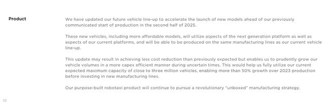 馬斯克在分析師電話會(huì)議中表示,更低價(jià)車型即使不是今年晚些時(shí)候也會(huì)在2025年初開始生產(chǎn)。