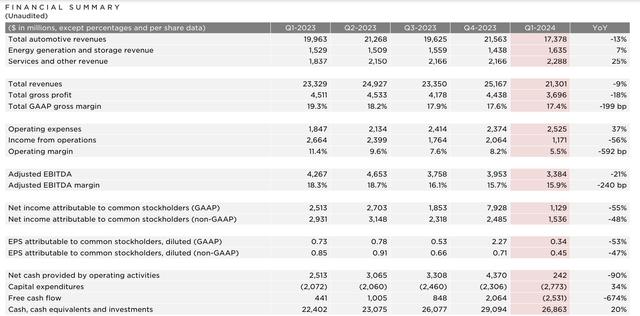 財(cái)報(bào)顯示,特斯拉一季度營(yíng)收同比下降9%至213億美元,低于市場(chǎng)預(yù)期的223億美元,既是2020年二季度新冠疫情擾亂運(yùn)營(yíng)以來的近四年里首次同比下滑,也是2012年以來最大降幅,較去年四季度的251.7億美元環(huán)比下滑超15%,主要由于全球?qū)﹄妱?dòng)汽車的需求放緩。
