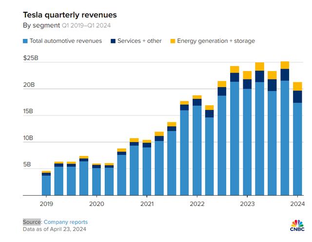 與去年同期相比,特斯拉能源部門的收入增長(zhǎng)了7%,達(dá)到16.4億美元,而服務(wù)和其他收入增長(zhǎng)了25%,達(dá)到22.9億美元。