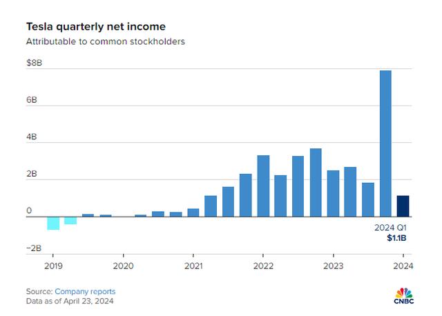 由于對(duì)交付疲軟、中國(guó)競(jìng)爭(zhēng)和公司持續(xù)降價(jià)的擔(dān)憂,特斯拉股價(jià)今年暴跌了40%以上。本月早些時(shí)候,特斯拉公布第一季度汽車交付量同比下降8.5%。