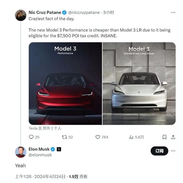 雖然美國(guó)網(wǎng)友一開始的關(guān)注焦點(diǎn)還是這輛車的續(xù)航里程,但很快就被價(jià)格引發(fā)的熱議蓋過了——美國(guó)網(wǎng)友驚奇的發(fā)現(xiàn),由于美國(guó)現(xiàn)行的電動(dòng)車補(bǔ)貼政策,新的高性能版竟然要比標(biāo)準(zhǔn)長(zhǎng)續(xù)航版還要便宜!
