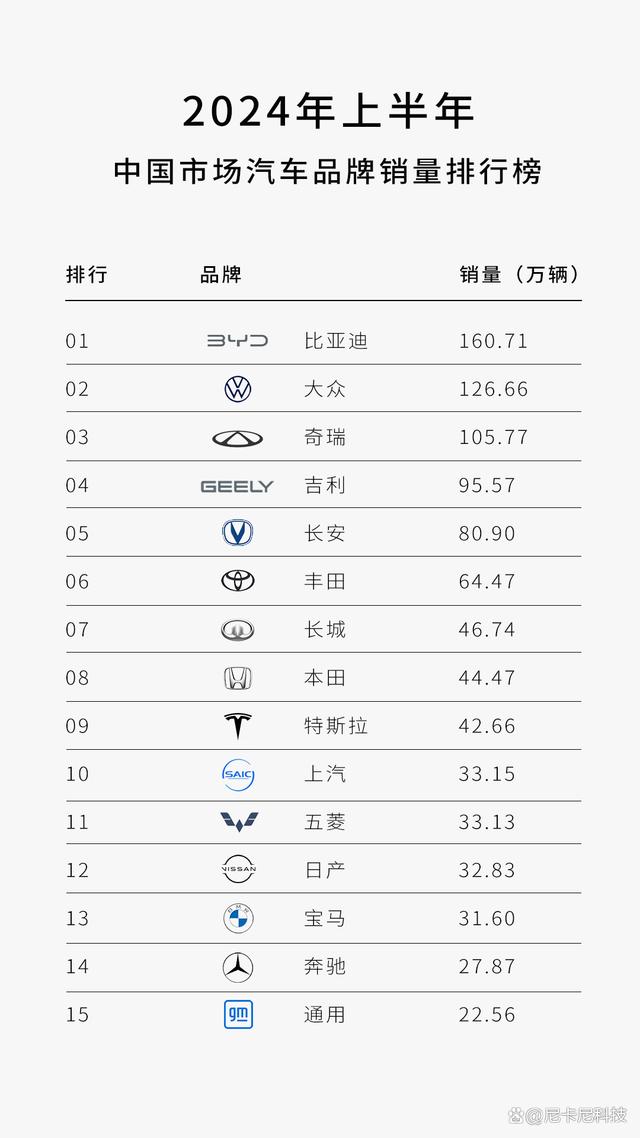 2024年上半年國內(nèi)車企銷量排名出爐,中國品牌集體崛起!