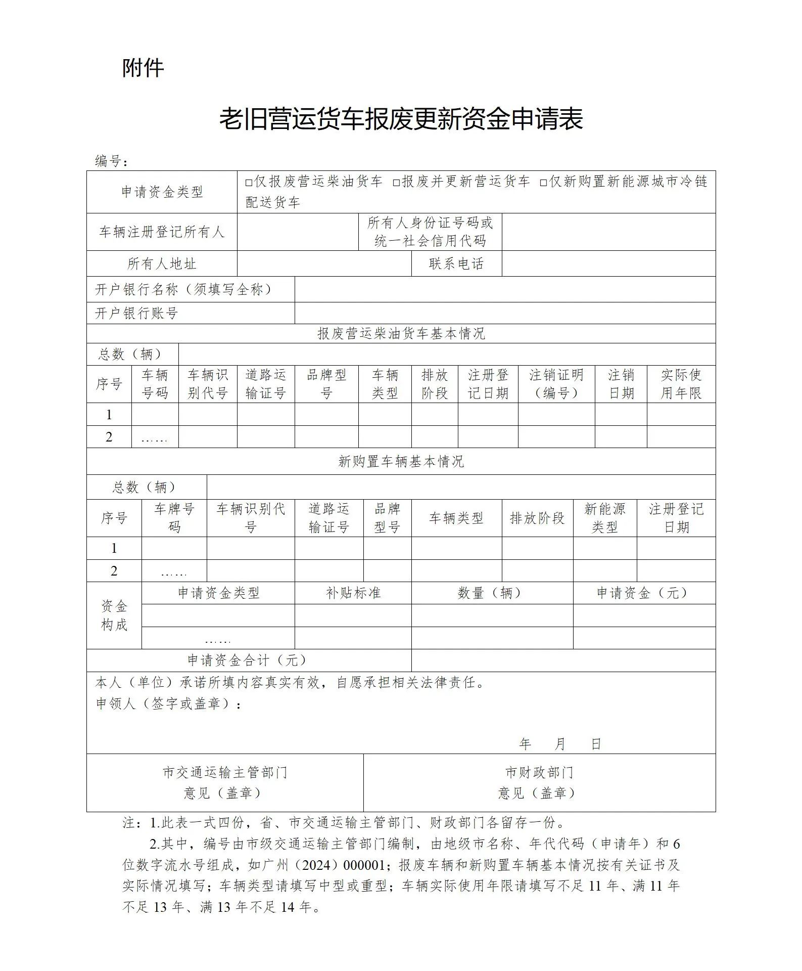 附件:老舊營運(yùn)貨車報(bào)廢更新資金申請(qǐng)表